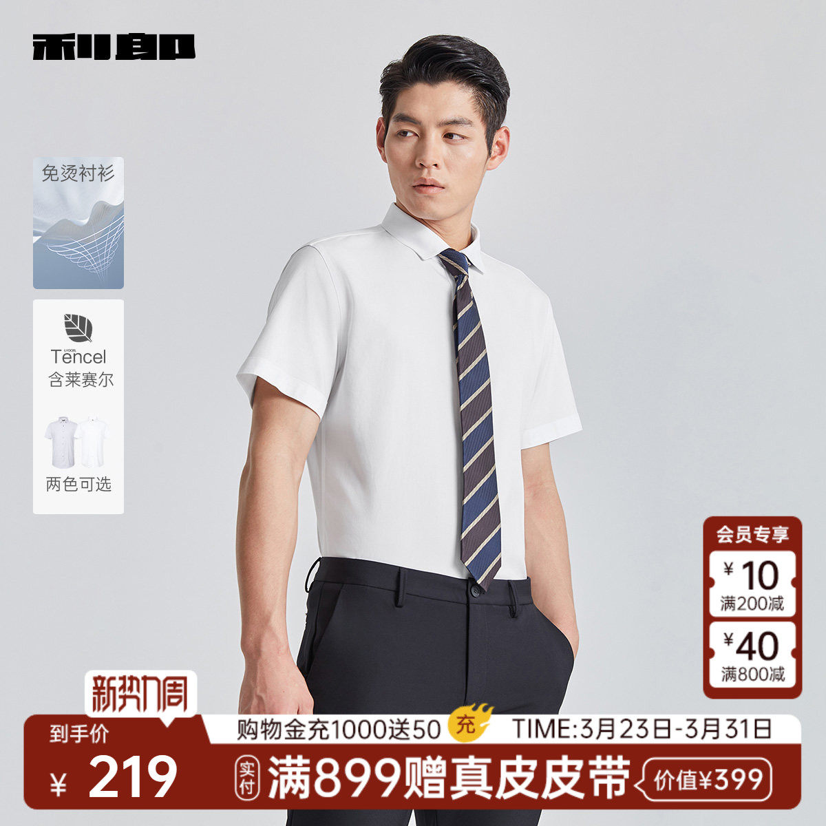 【DP免烫/含莱赛尔】利郎官方衬衫男士夏季男装易打理短袖衬衣
