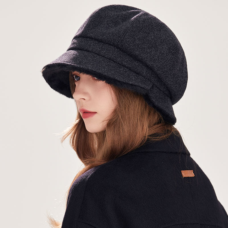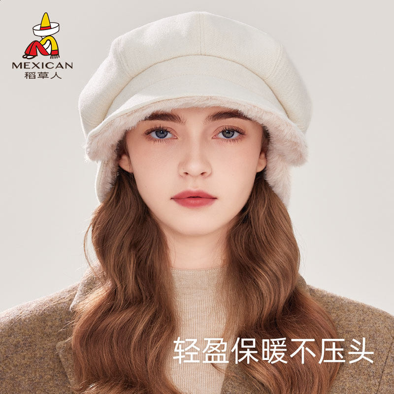 稻草人加绒帽子秋冬季加厚女护耳显脸小保暖鸭舌渔夫帽文艺八角帽