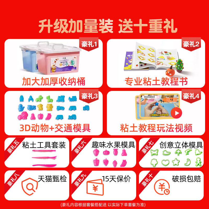浮造超轻粘土黏土彩泥橡皮泥无毒食品儿童手工圣诞节diy幼儿园