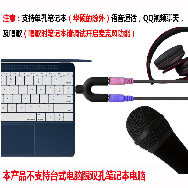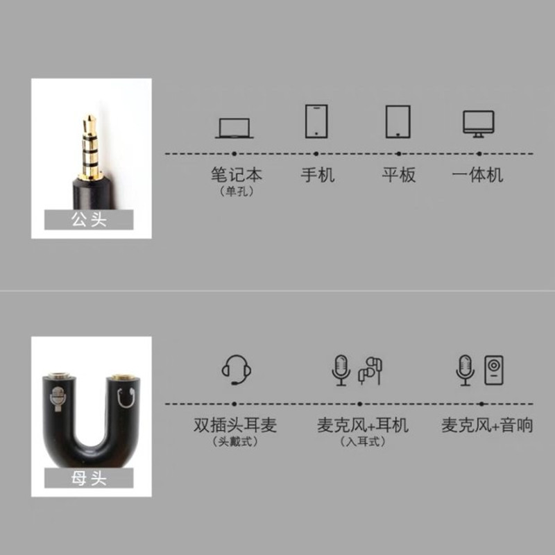 耳机麦克风二合一转接头手机音频线一分二话筒笔记本电脑转换器单孔转接线耳麦1分2线器3.5mm接口圆孔接耳塞