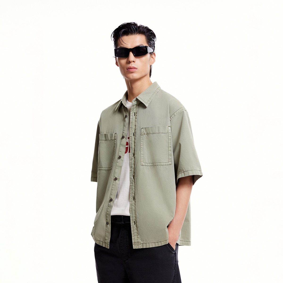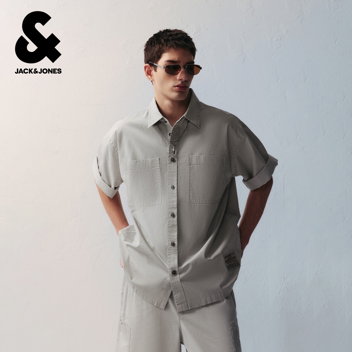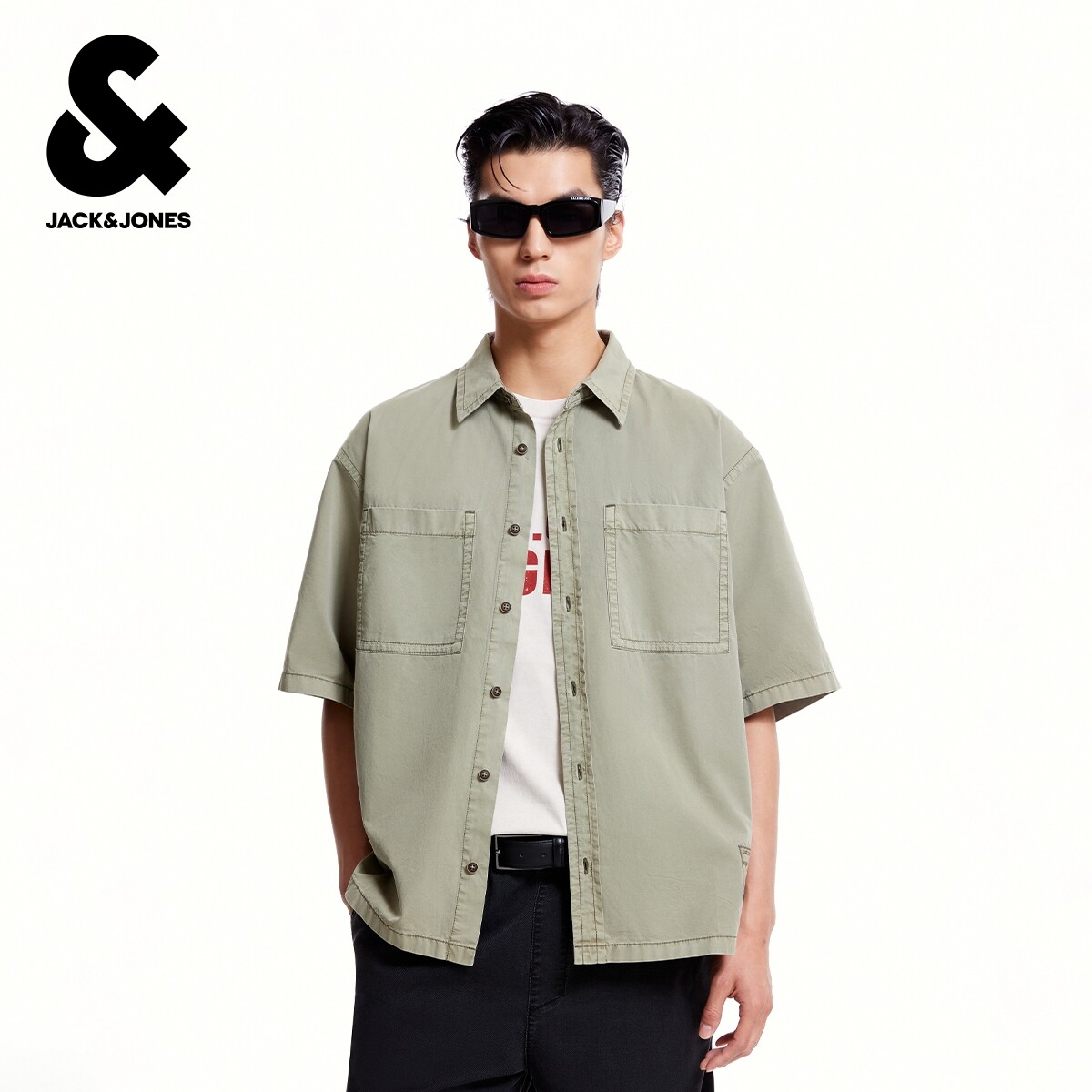 杰克琼斯奥特莱斯夏季男装短袖衬衫潮流时尚简约个性休闲质感上衣