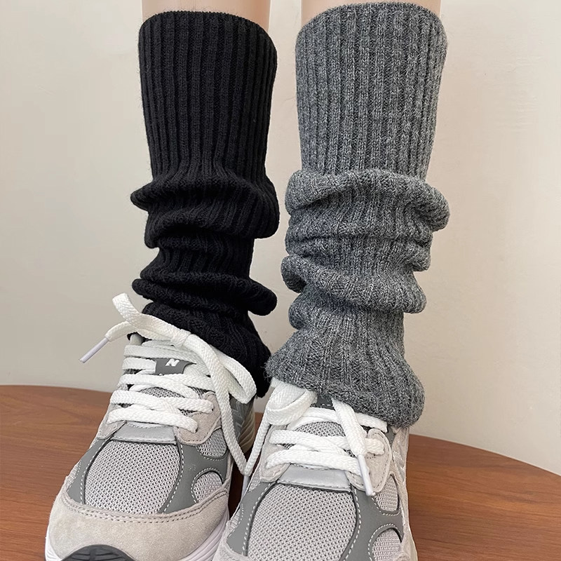 高品质欧货韩国老板娘袜子纯色薄款堆堆袜百搭及膝小腿袜黑灰女袜