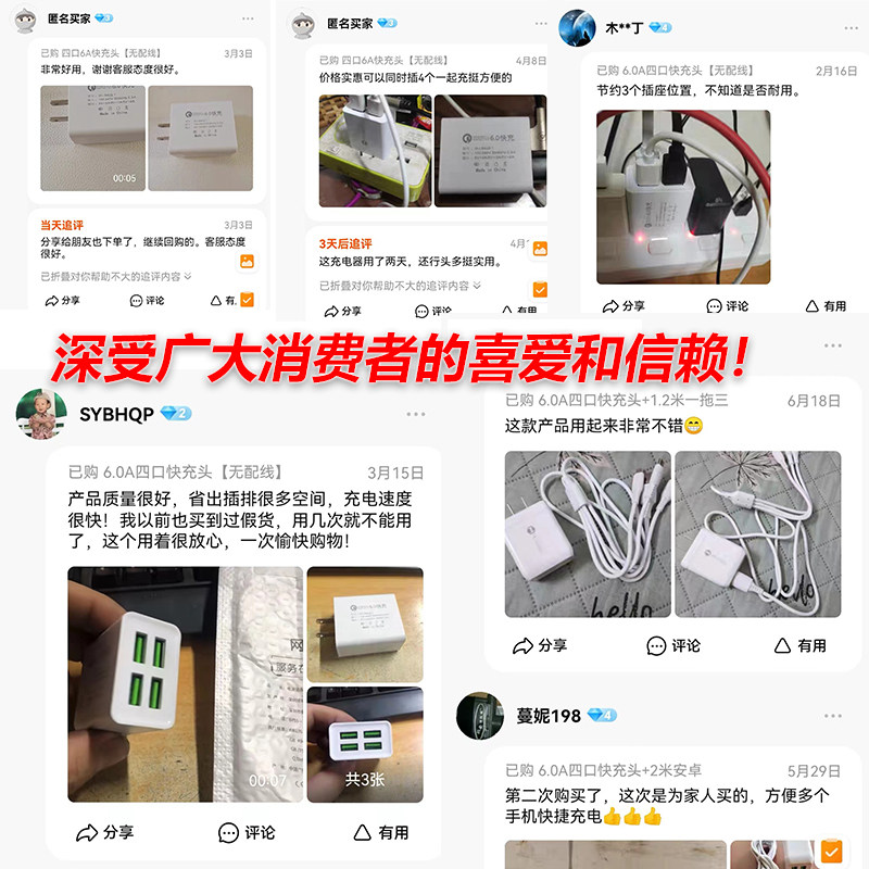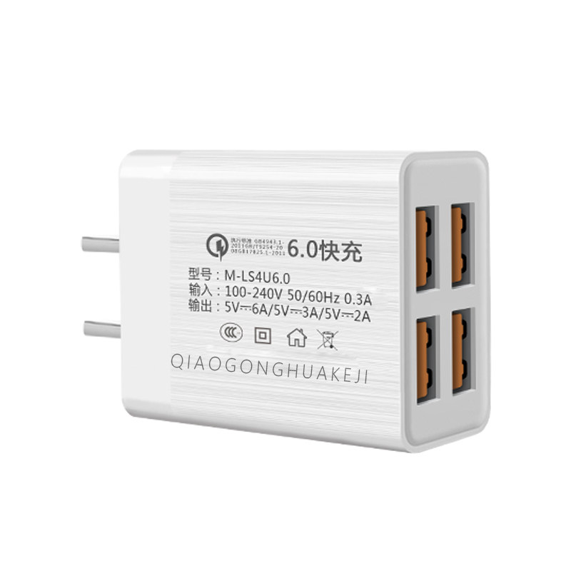 4口手机充电器通用安卓华为小米快充多插头OPPOvivo多口手机快充充电器闪充数据线多口usb充电器快充多孔插头