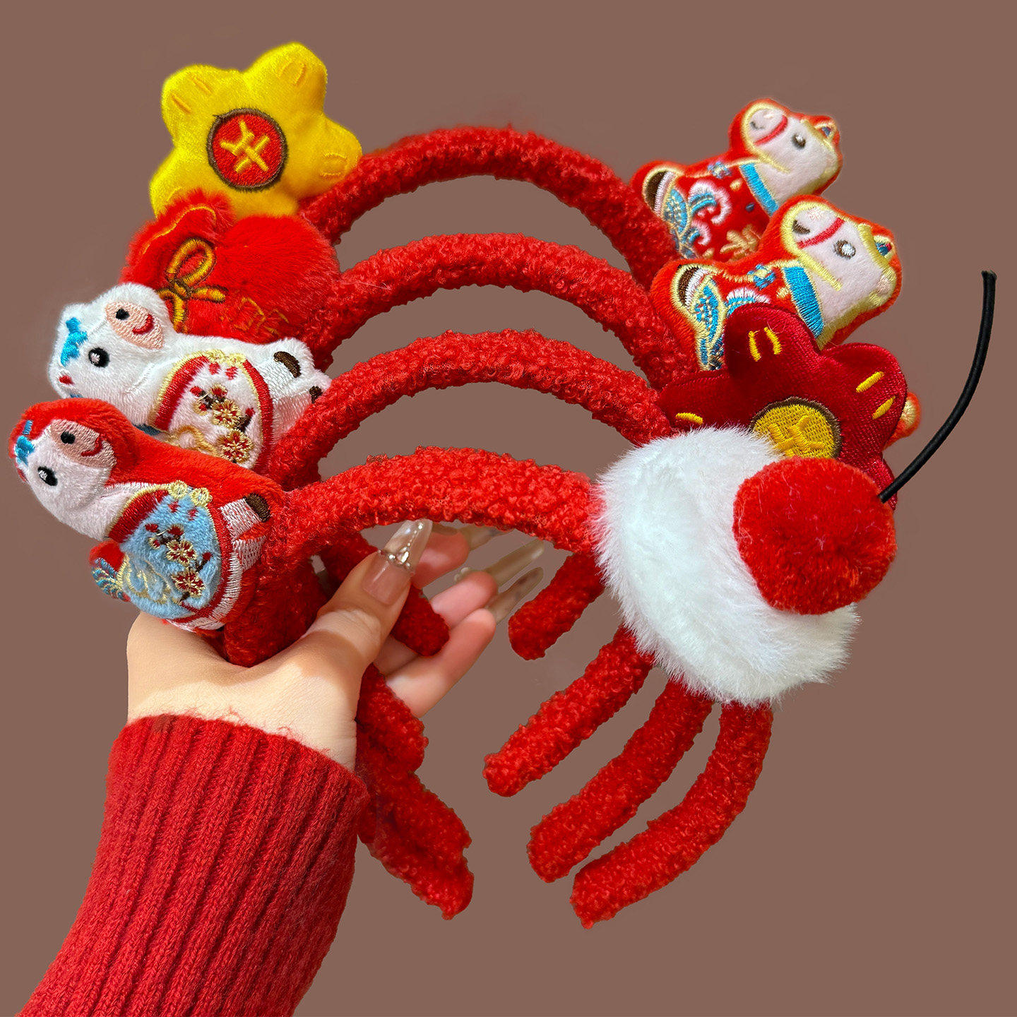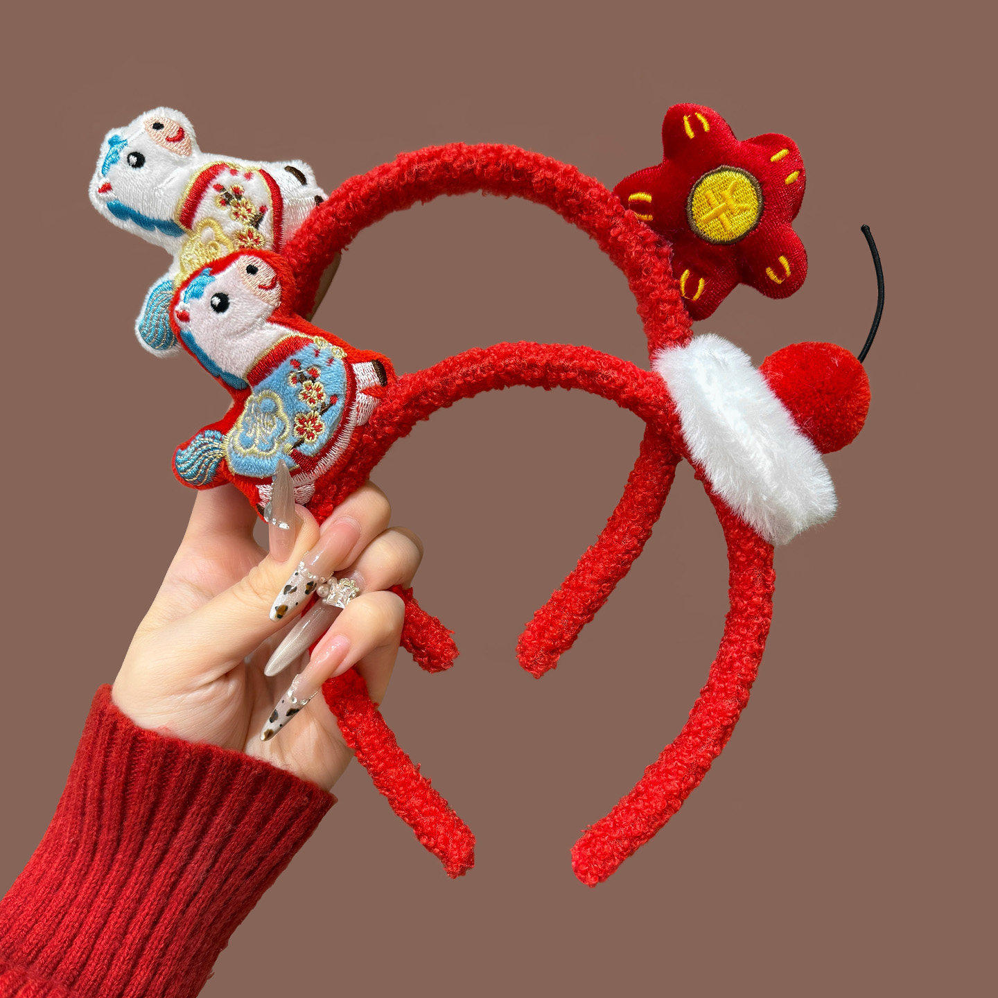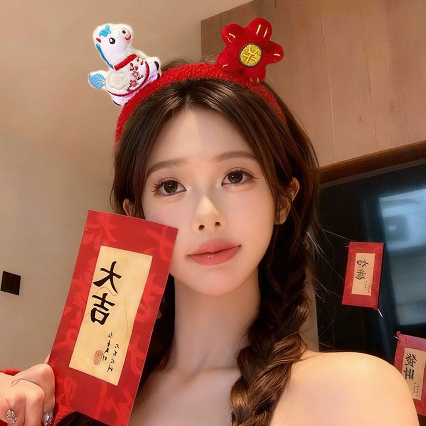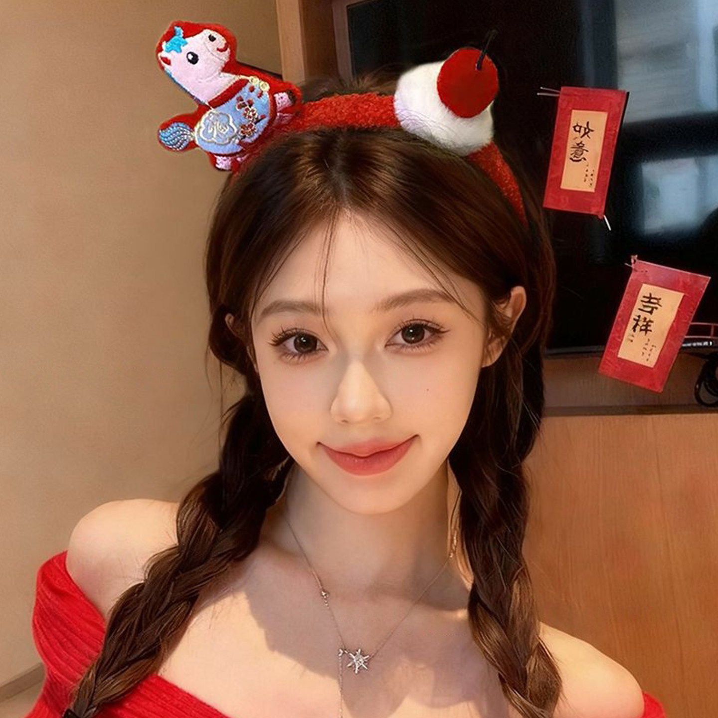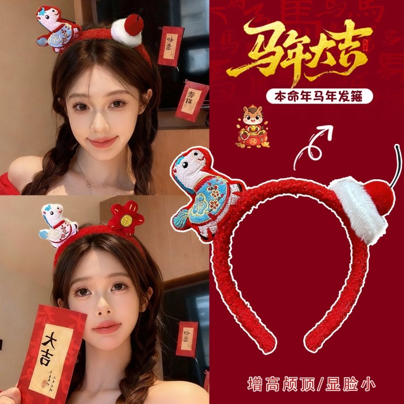 新年红色毛绒发箍女款2026马年本命年头箍高颅顶压发洗脸发卡头饰
