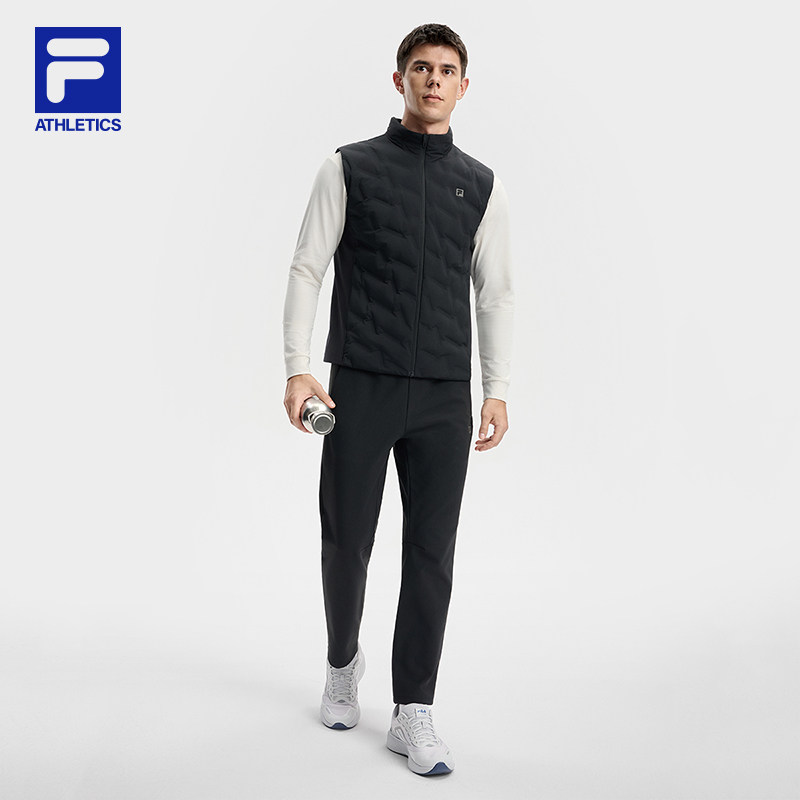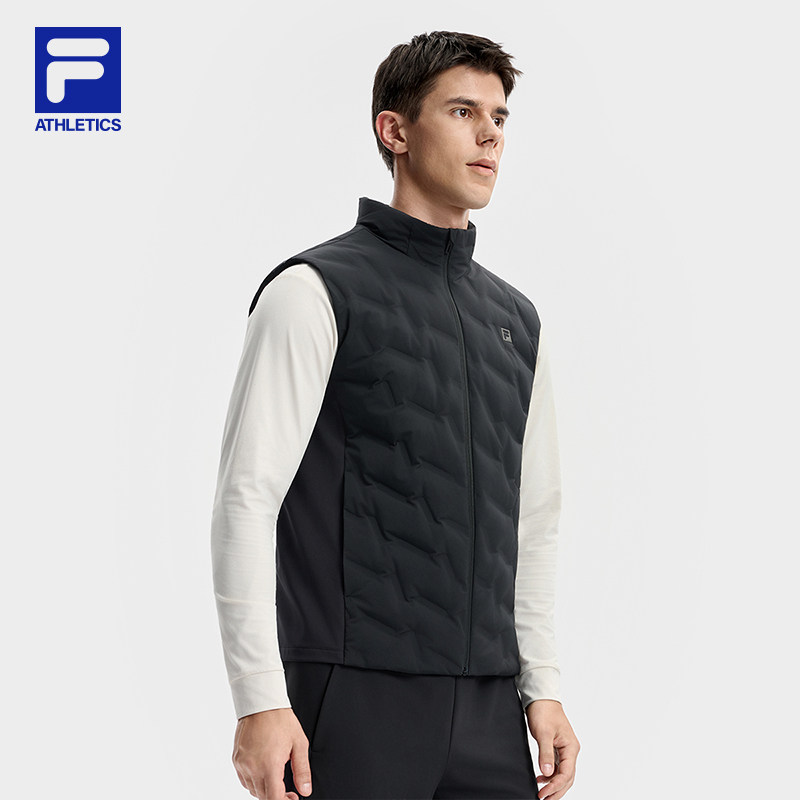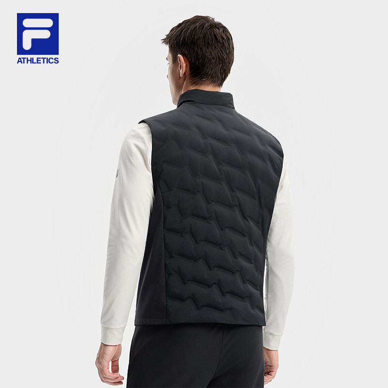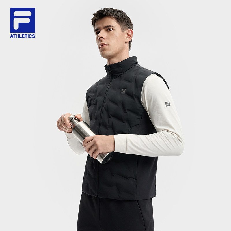 FILA 斐乐官方男羽绒马甲冬季新款健身运动简约基础保暖羽绒外套
