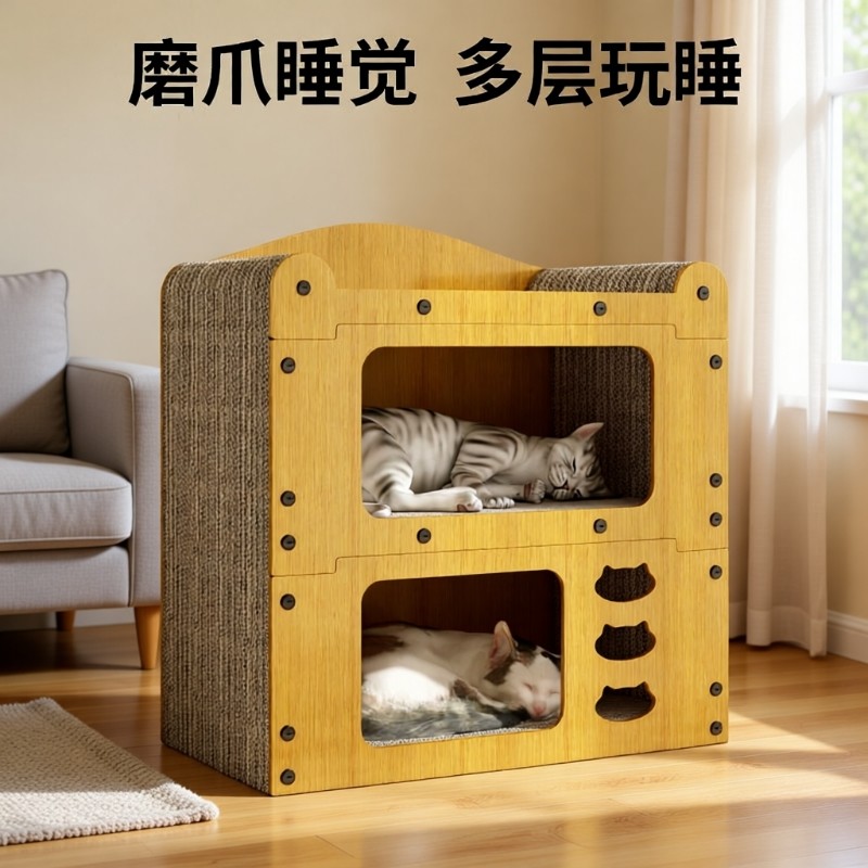 立式猫抓板猫窝一体瓦楞纸猫爪板猫沙发猫别墅屋四季通用猫咪玩具