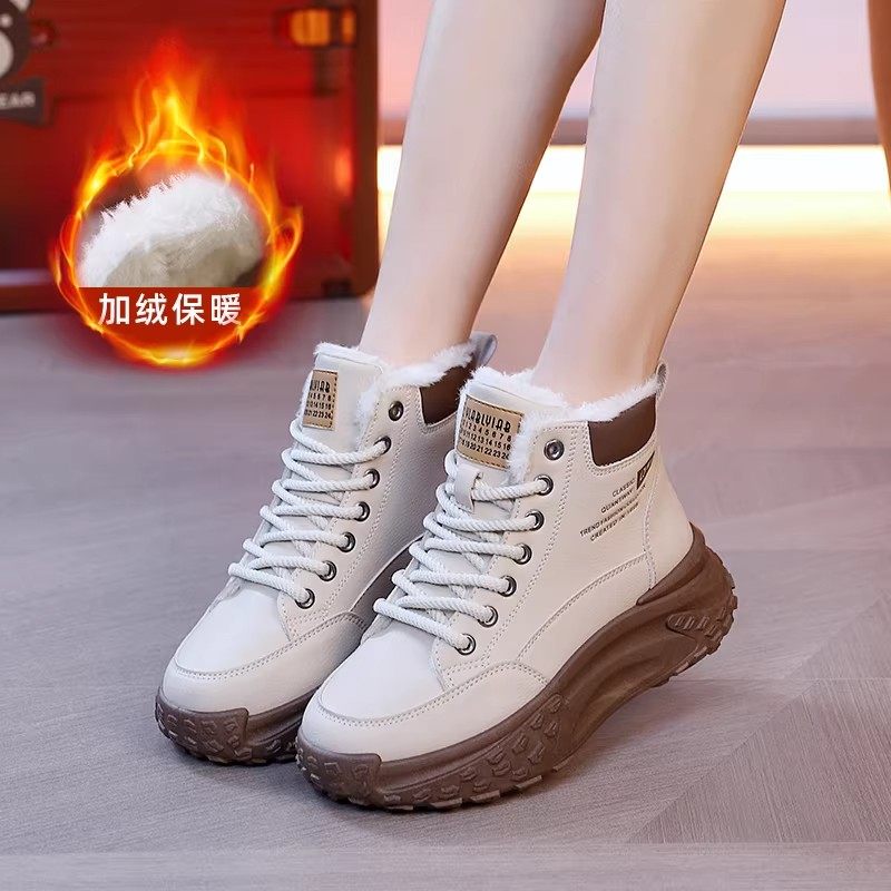 厚底内增高雪地靴女款2025新款冬季加绒加厚短筒真皮防水雪地棉鞋