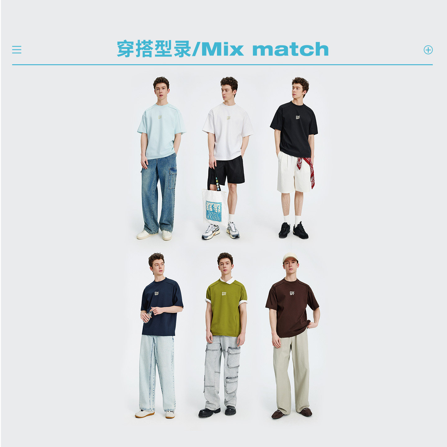 HM男装女装T恤春季透气圆领户外出游运动短袖内搭简约上衣0685816