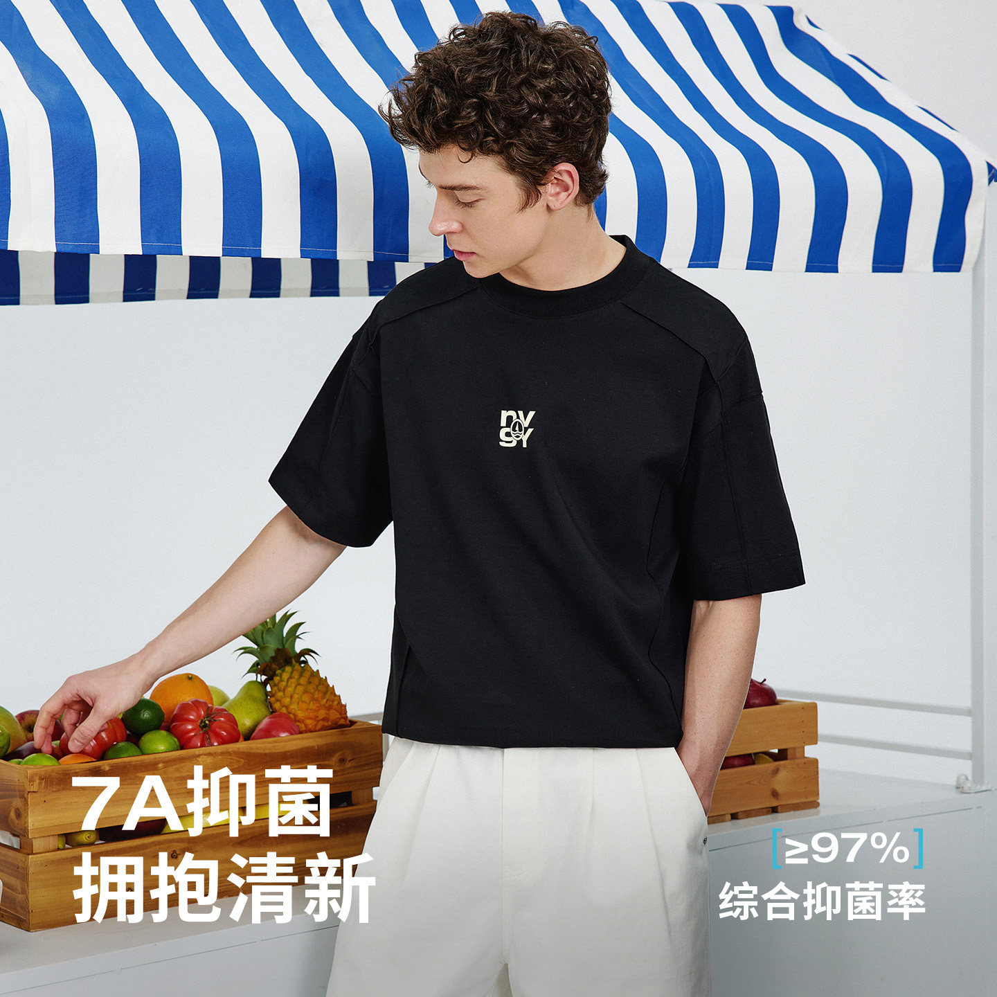 Navigare意大利小帆船黑色百搭短袖T恤男2026春夏圆领半袖上衣