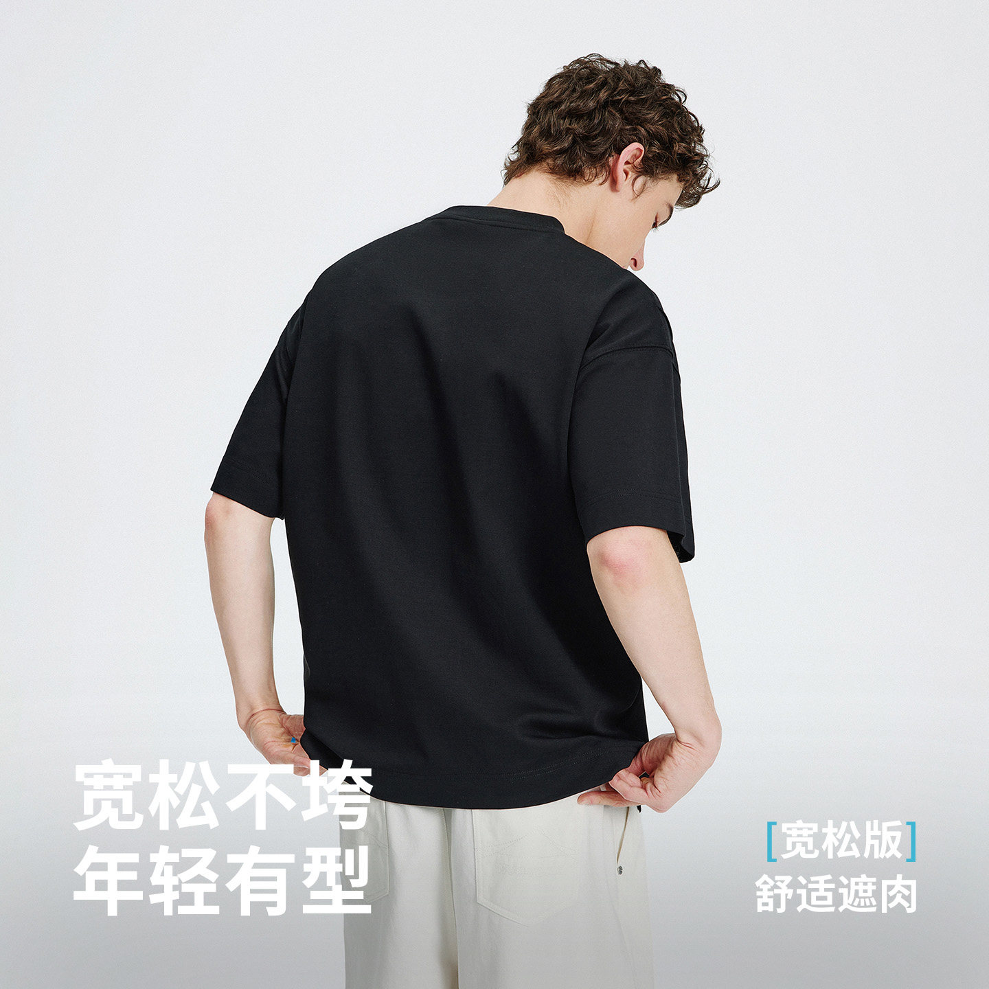 小尼力重磅纯色打底衫纯棉oversize白色短袖T恤男夏季体恤上衣服