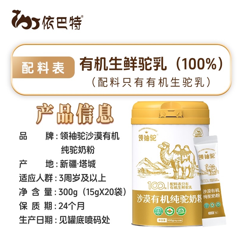 依巴特沙漠有机纯骆驼奶新疆驼奶粉成人中老年人有机纯驼奶礼盒装