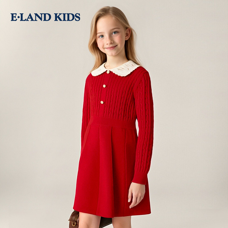 【新年款】eland kids衣恋童装女童连衣裙26春新品含绵羊毛演出服