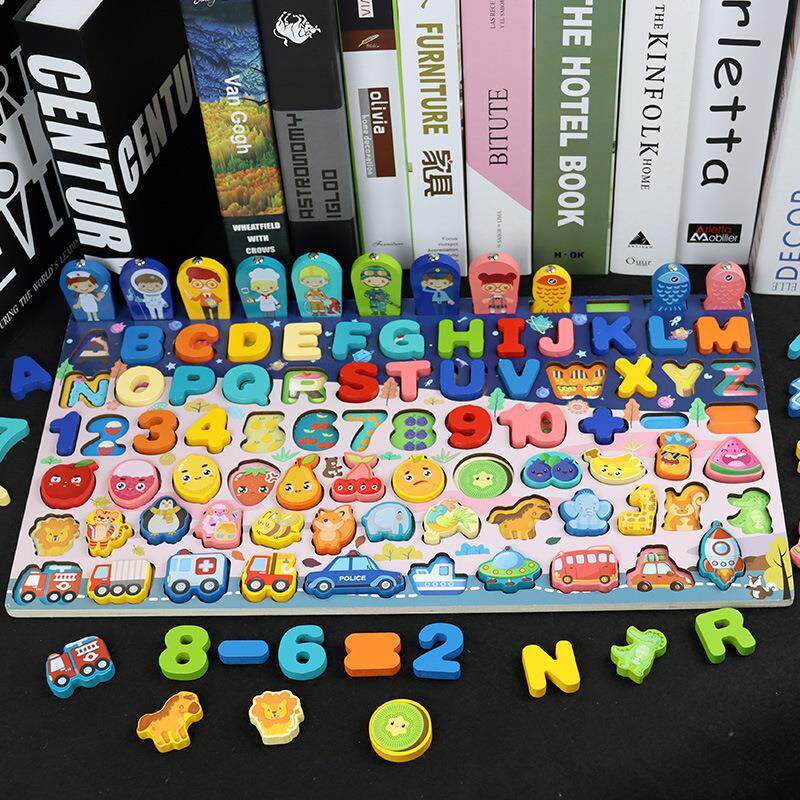 多功能磁性钓鱼对数板幼儿园儿童早教木质拼图拼板串串珠玩具积木