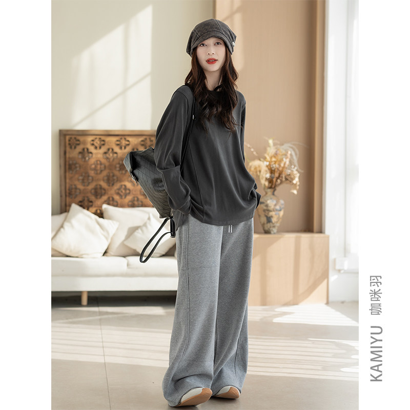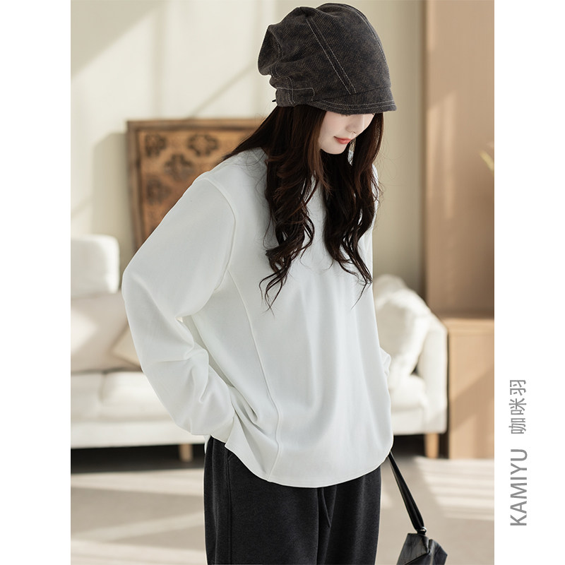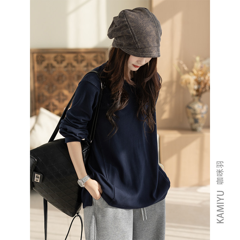 咖咪羽打底衫女秋冬新款纯色文艺显瘦洋气女士圆领宽松女装上衣