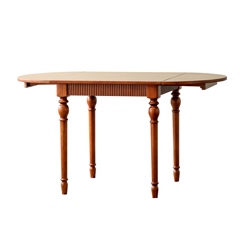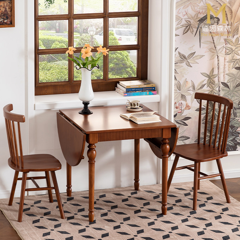 实木餐桌法式折叠原木方桌可变圆桌中古风伸缩白蜡木家用全实木