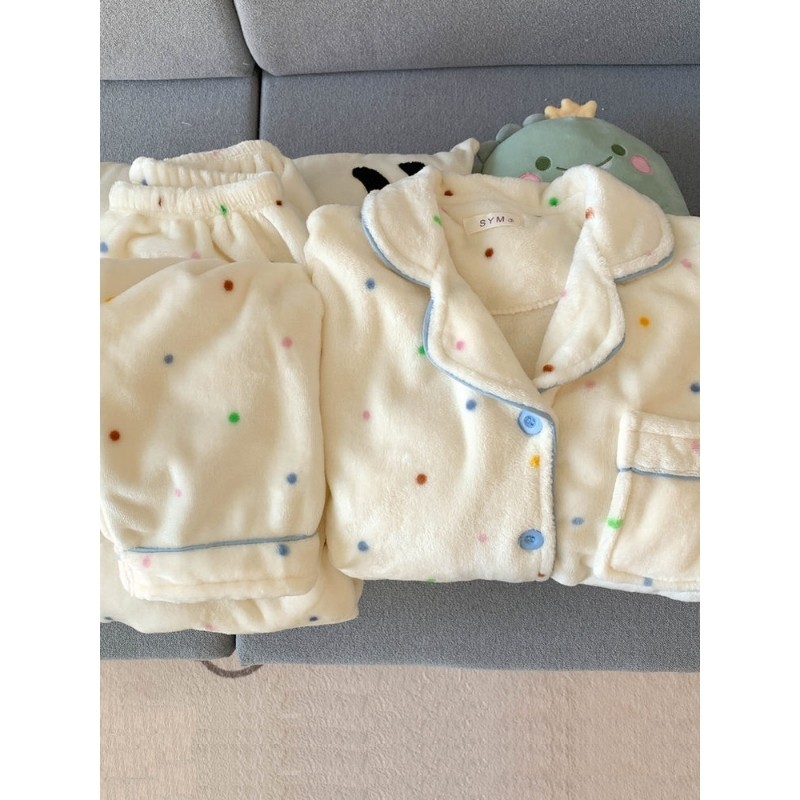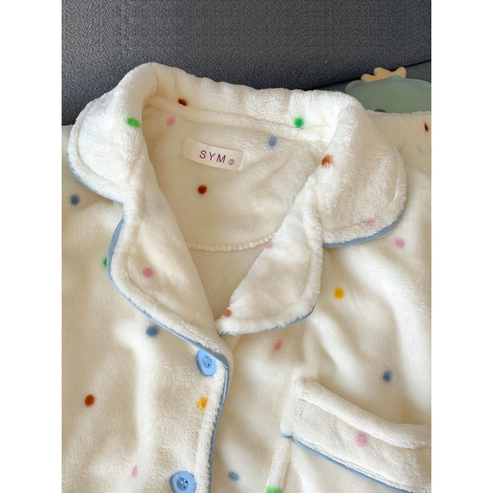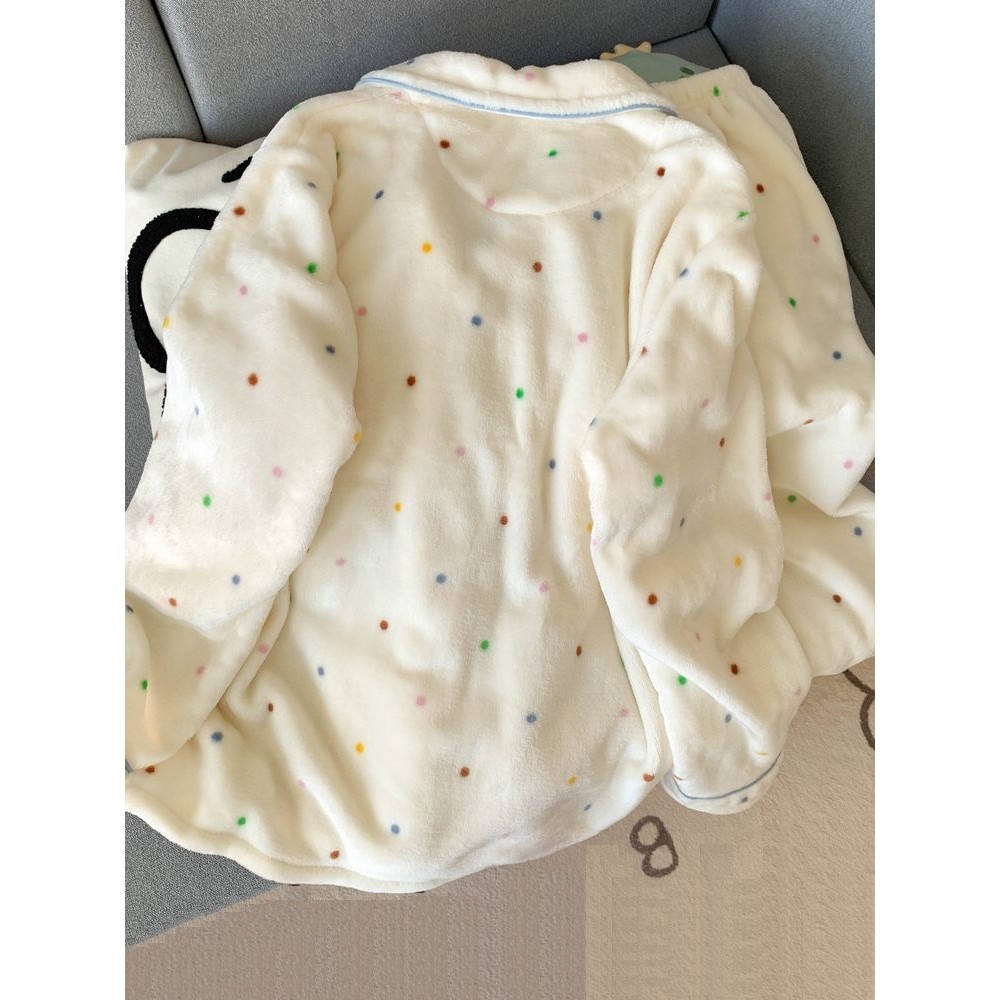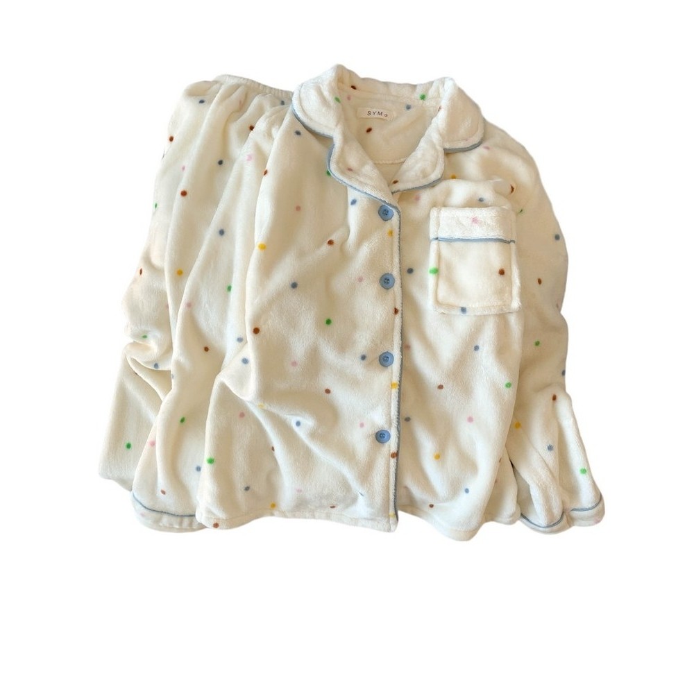 红豆法兰绒秋冬款大码睡衣女秋冬季加厚加绒可爱少女小圆点保暖家