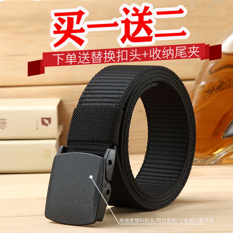 无金属防过敏防金属过敏男士腰带帆布塑料扣头无铁无磁军训皮带男