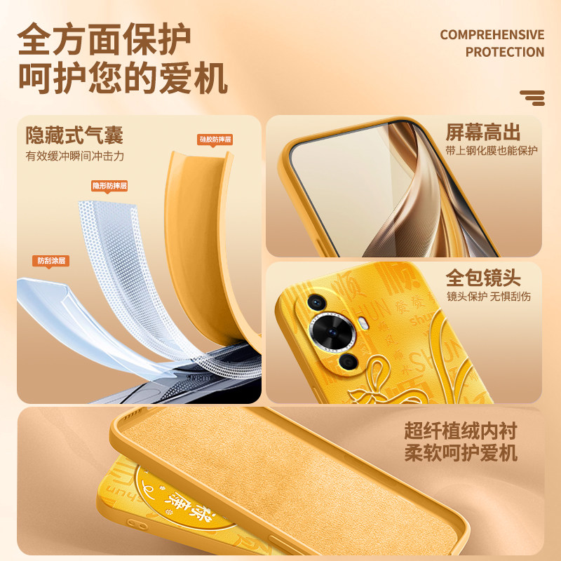 适用华为Nova12活力版手机壳nove保护套nava新款novo硅胶n0va板nowa全包防摔高级感男女国风新中式黄色软外壳