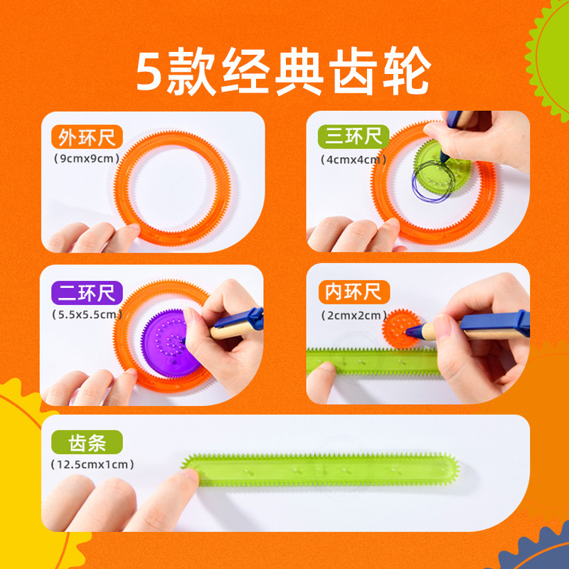 mideer弥鹿百变创意万花尺魔幻套装儿童多功能尺子幼儿园小学生宝宝玩具绘图画画模板3-6岁镂空画图画花曲线