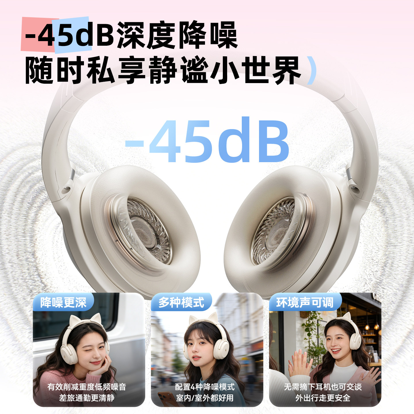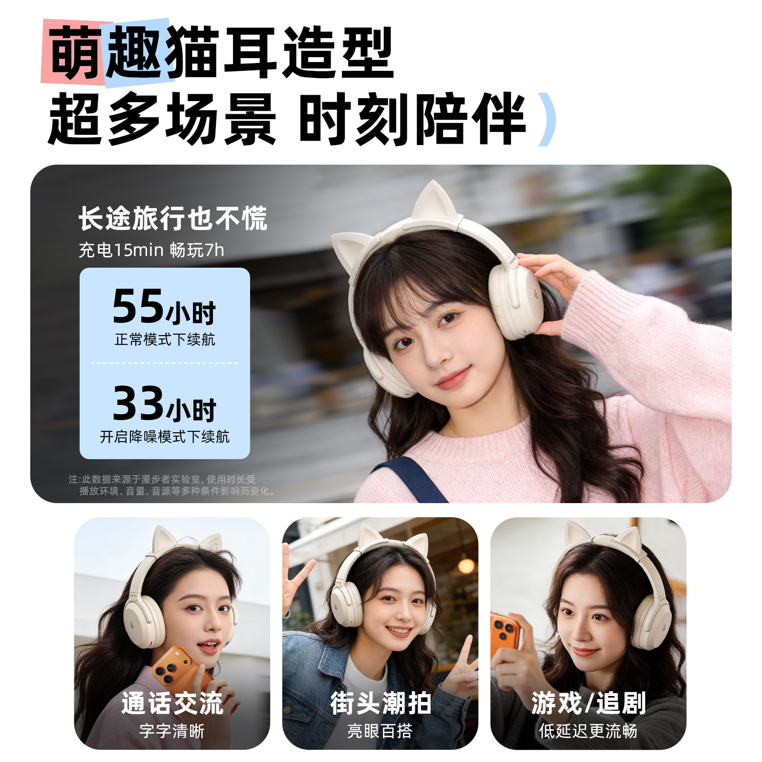 漫步者MT6PRO猫耳款头戴式耳机主动降噪蓝牙游戏有线无线通用女生