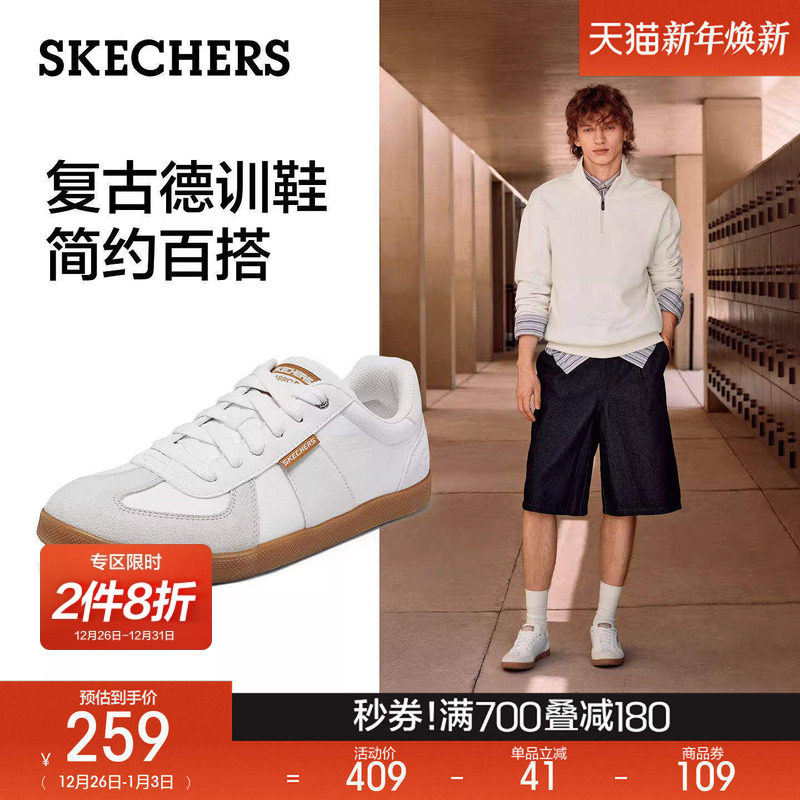 斯凯奇阿甘鞋|2025秋冬新款男子休闲运动鞋德训鞋薄底T头小白板鞋