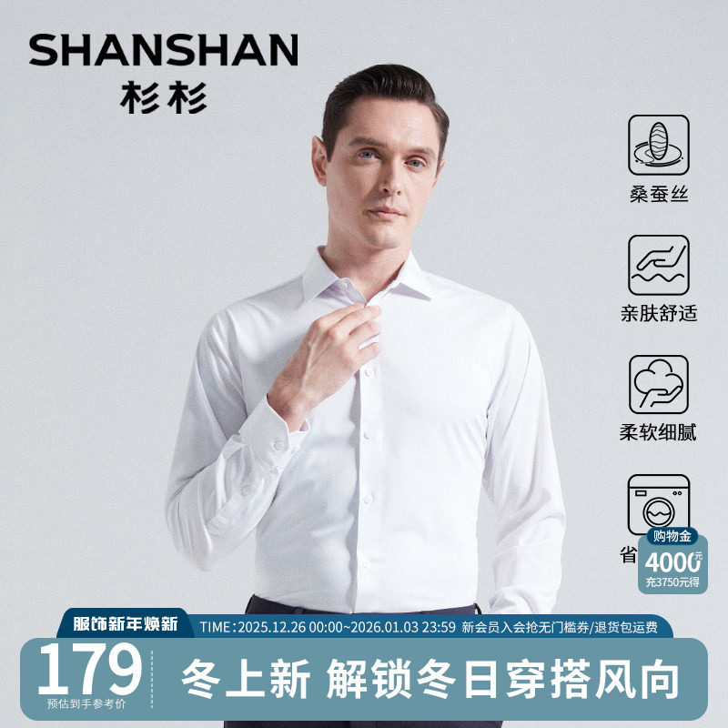 杉杉桑蚕丝白色衬衫男士新款长袖正装内搭爸爸商务衬衣服可机洗