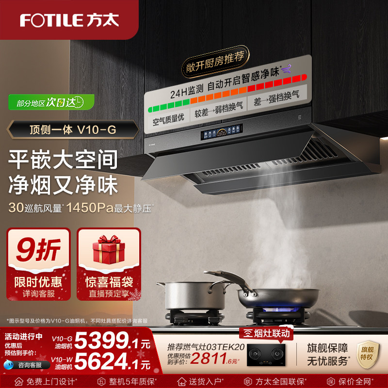【新品】方太顶侧一体油烟机V10-G家用平嵌抽油烟机大吸力旗舰店