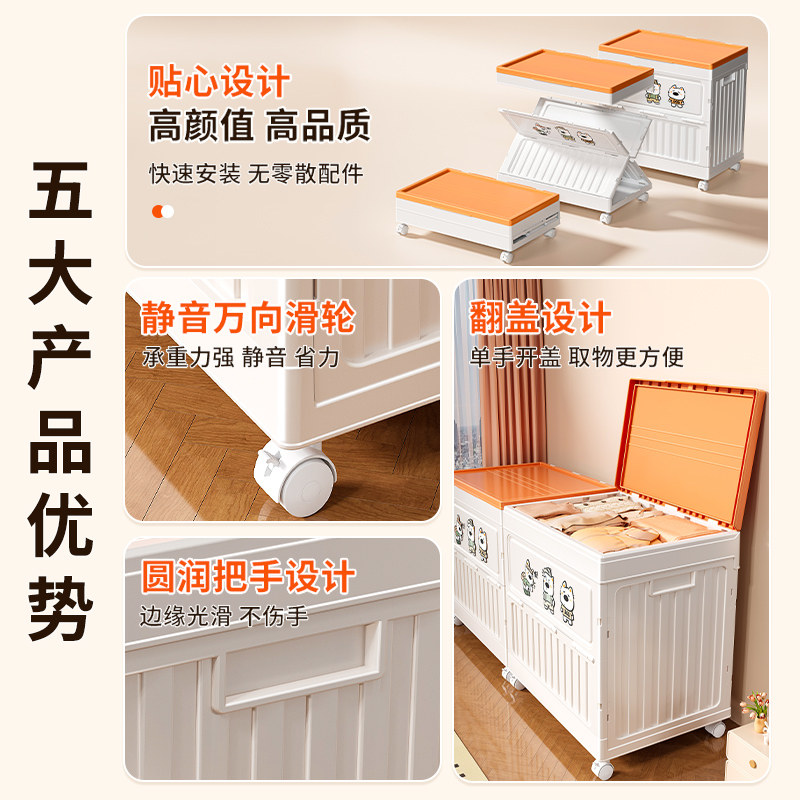 衣服收纳箱大容量超大卧室整理箱家用带轮折叠翻盖衣物被子储物柜