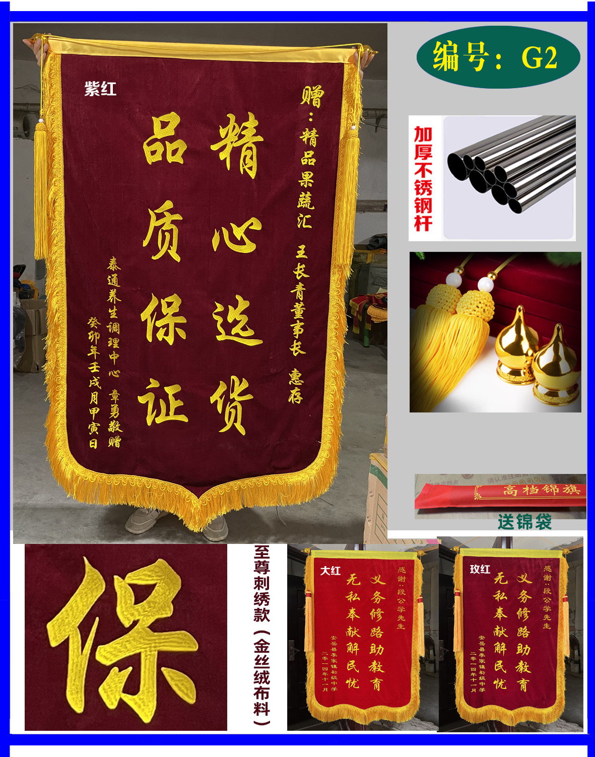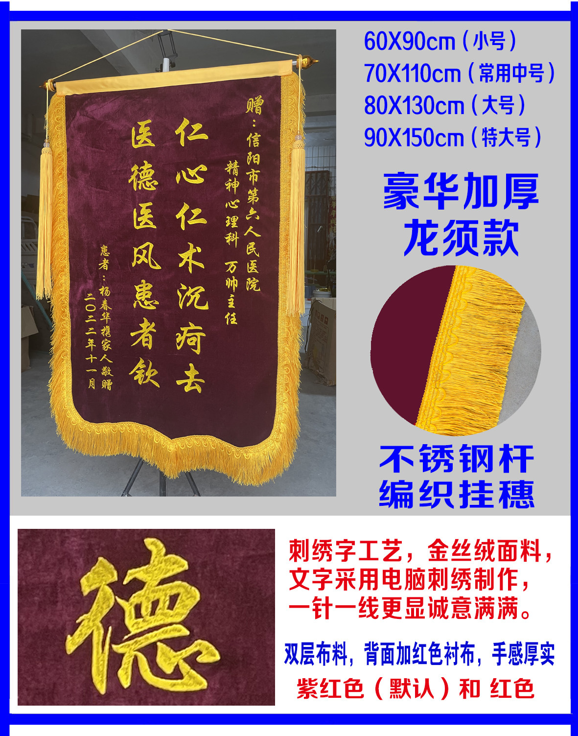 新款锦旗定做医生月嫂医院幼儿园装修推拿物业制作金丝绒布料新品