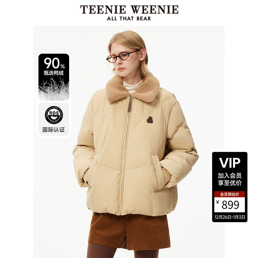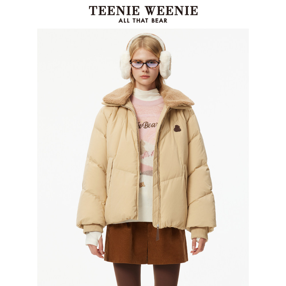 TeenieWeenie小熊奥莱女装羽绒服冬季仿羊羔毛翻领舒适外套