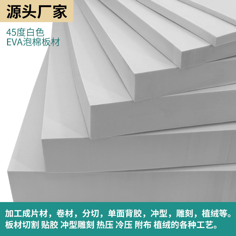 45度白色EVA泡棉材料环保高密度eva泡沫板材海绵垫防撞减震内衬定制