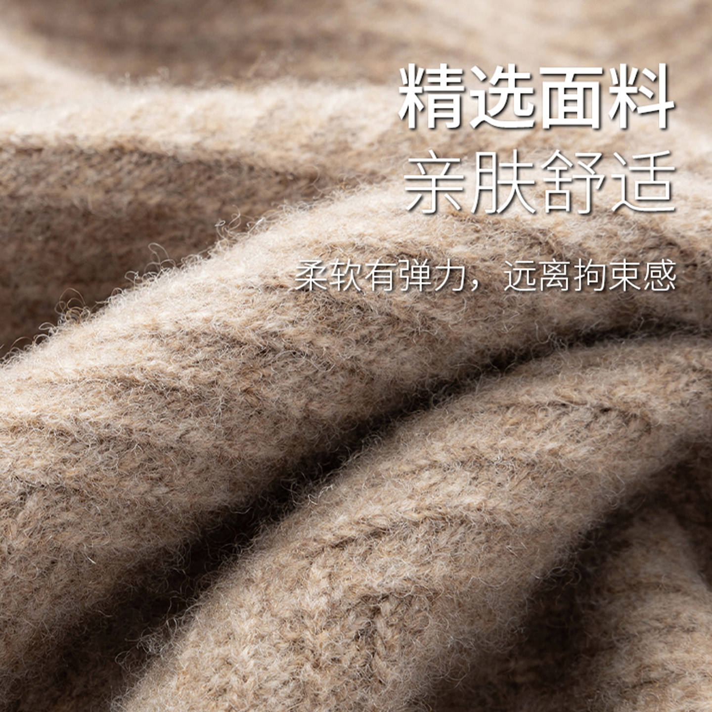 猫人山羊绒男士宽松毛衣秋冬新款半拉链高端羊毛针织爸爸装上衣