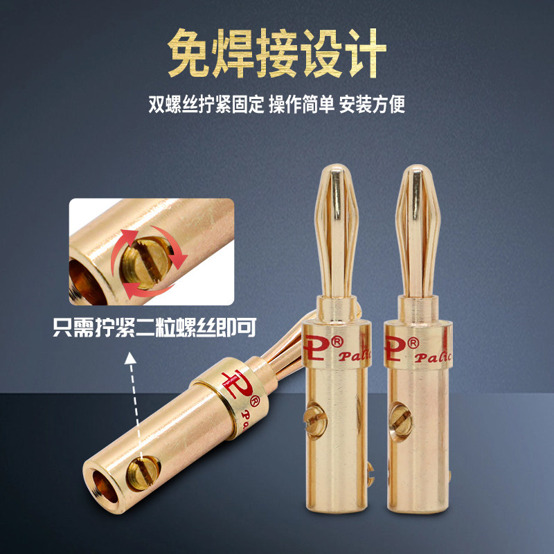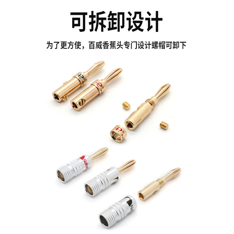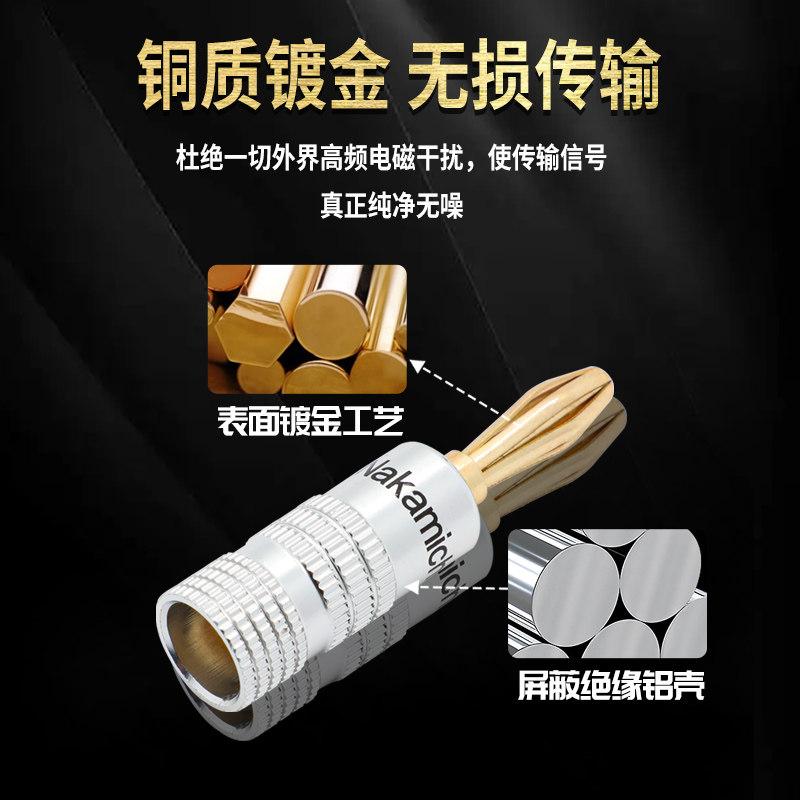 发烧级全镀金中道Nakamichi 黄铜音箱4mm香蕉插头喇叭线插头免焊