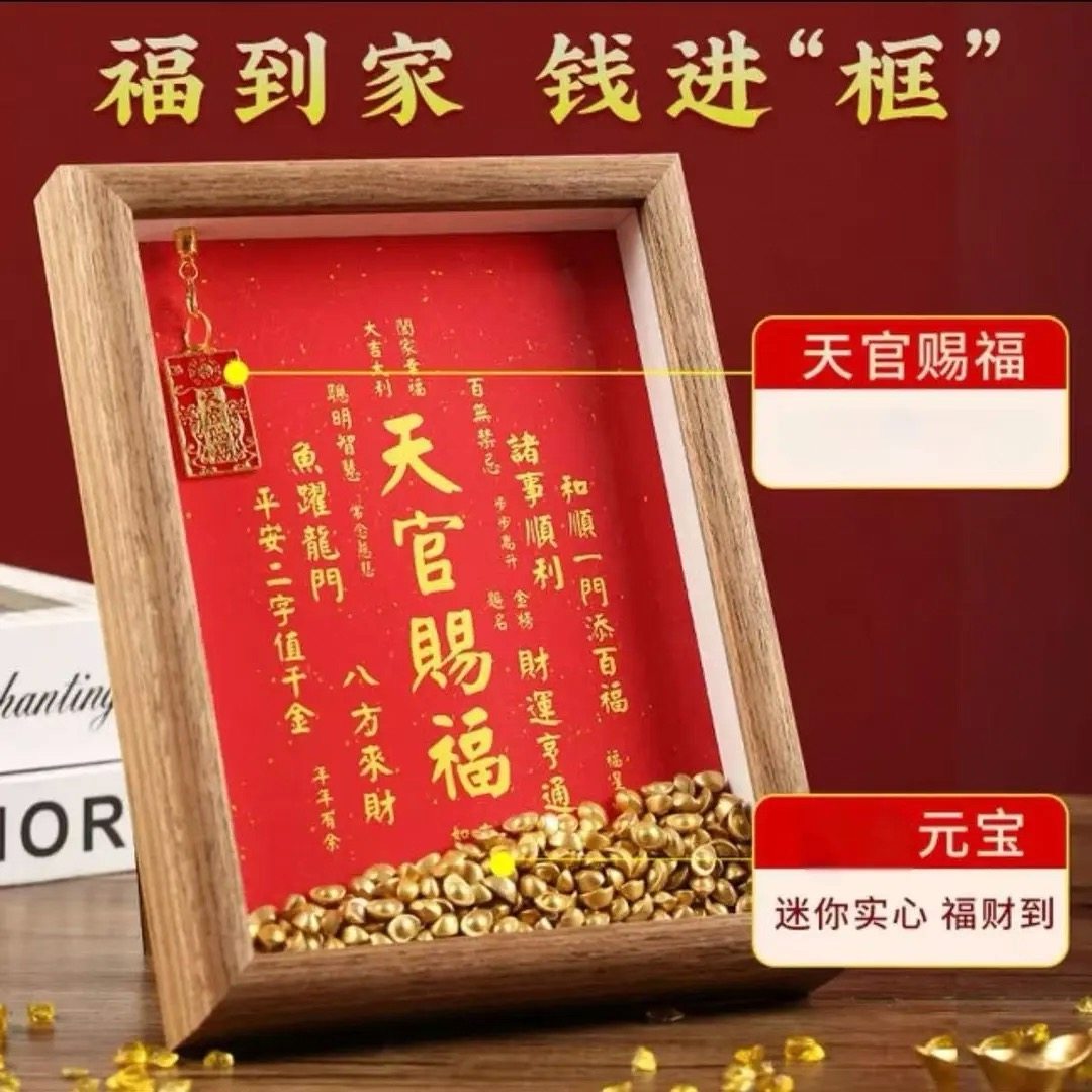 天官赐福字画摆件办公室桌面书法摆台新中式客厅红色喜庆装饰相框