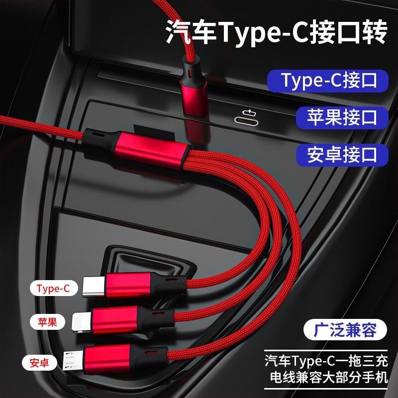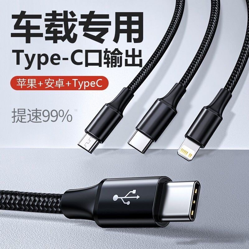 typec一拖三数据线车载专用适用苹果安卓荣耀华为小米OPPO三星vivo手机充电多头三合一快充宝马奔驰奥迪通用