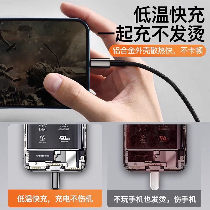 超级快充三合一数据线通用充电线适用苹果荣耀华为OPPO小米VIVO手机通用车载一拖三数据线透明芯片type-c带灯