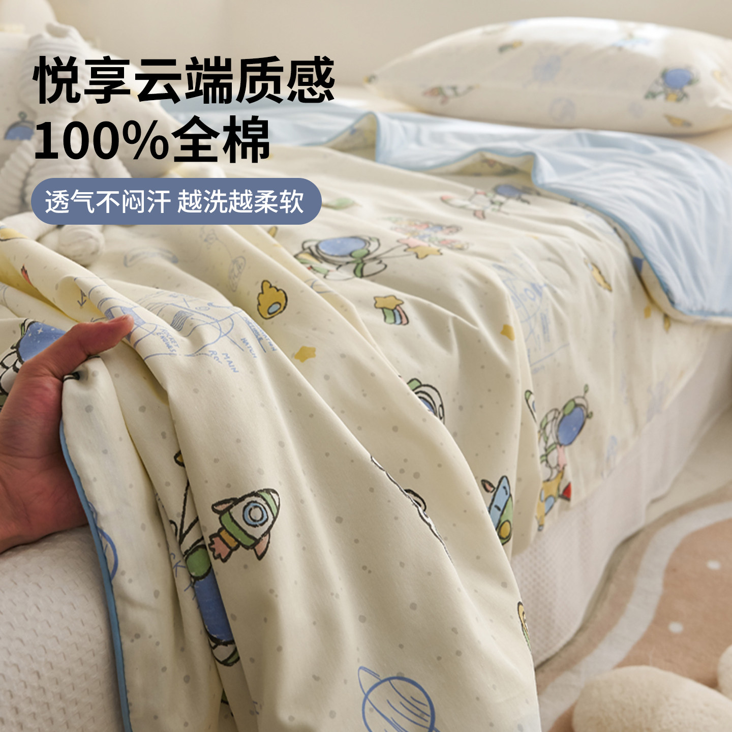 无印良品全棉夏凉被纯棉空调被冰丝凉感夏被单人可机洗儿童薄被子