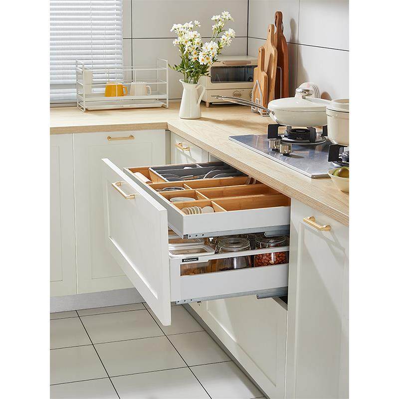 意驰厨房橱柜工具拉篮单层304不锈钢抽屉式厨柜内置物架分隔收纳
