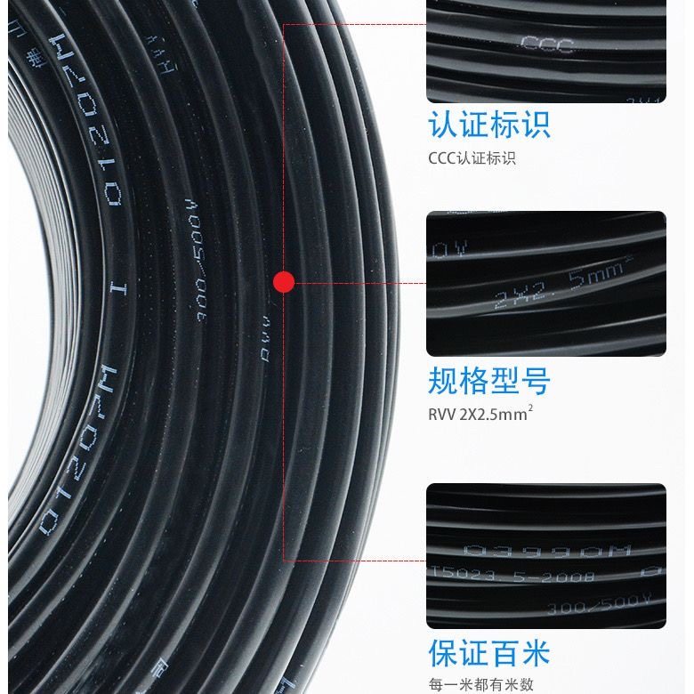 国标纯铜芯234芯电线软线0.50.751平方电缆RVV电源线铜线家用防冻