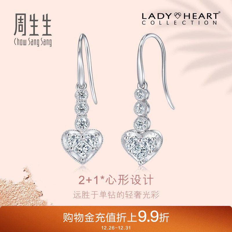 周生生18K金白色黄金Lady Heart钻石钻石耳钉85883E