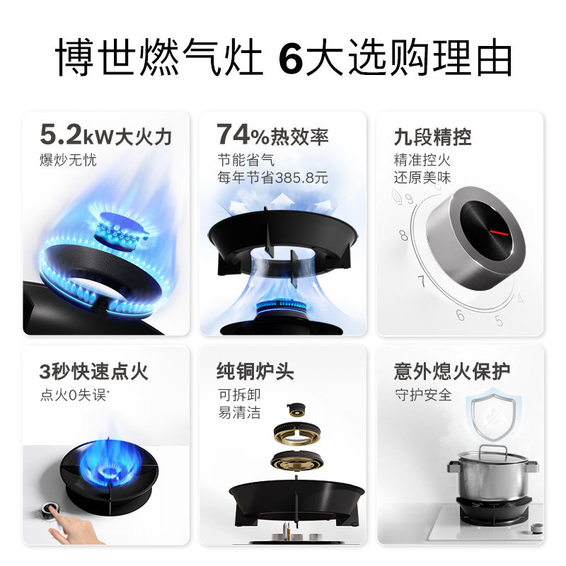 优雅天鹅白 9档精控火力 5.2KW大火力