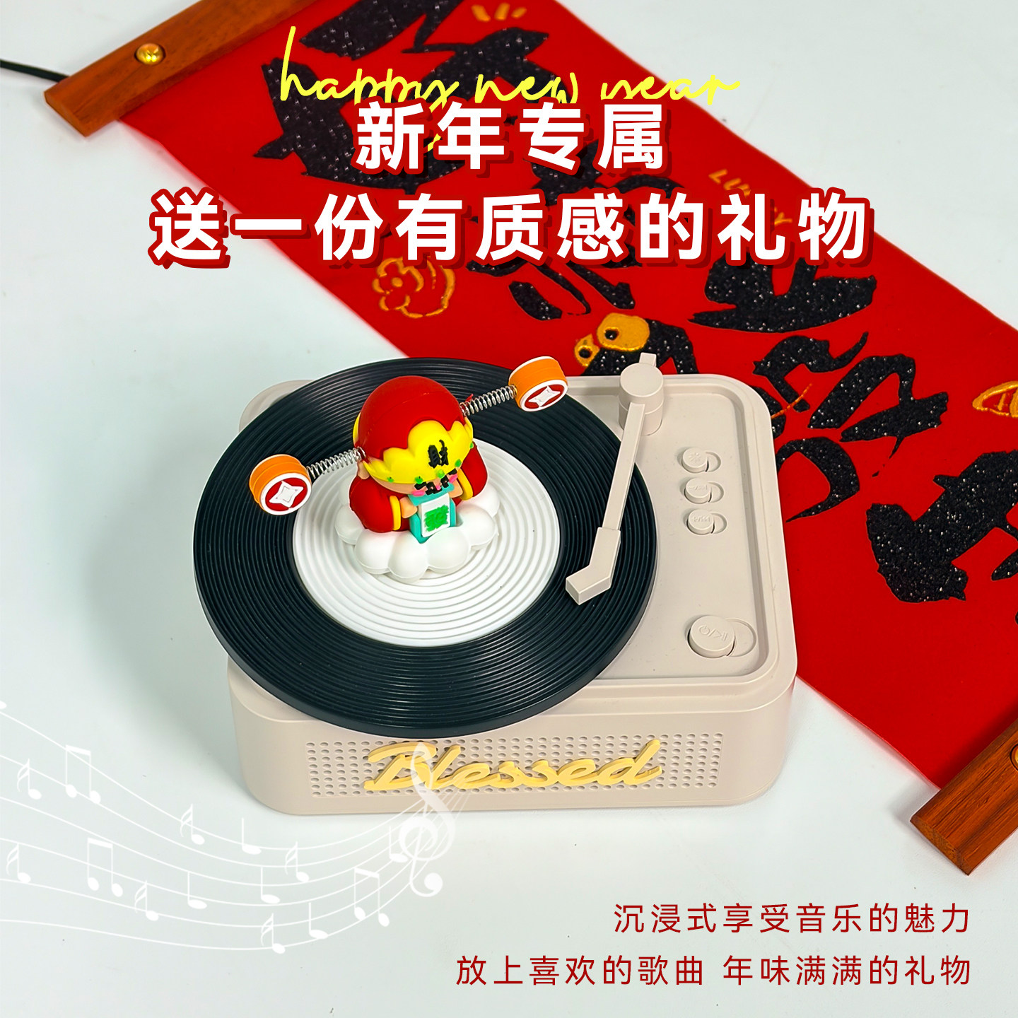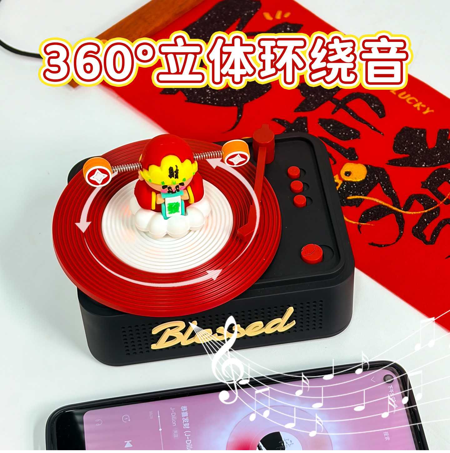 复古蓝牙音响迷你小型便捷黑胶唱片机财神摆件生日礼物本命年新年