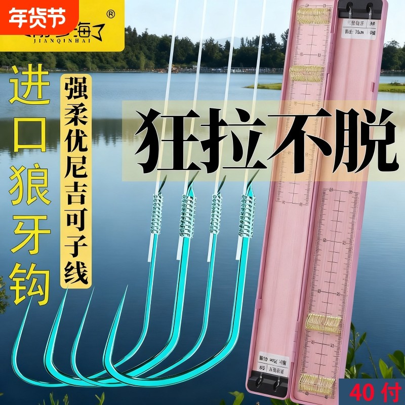 狼牙子线双钩成品正钓黑坑竞技鲤鱼钓鲫鱼钩套装鱼线溪流40付原丝