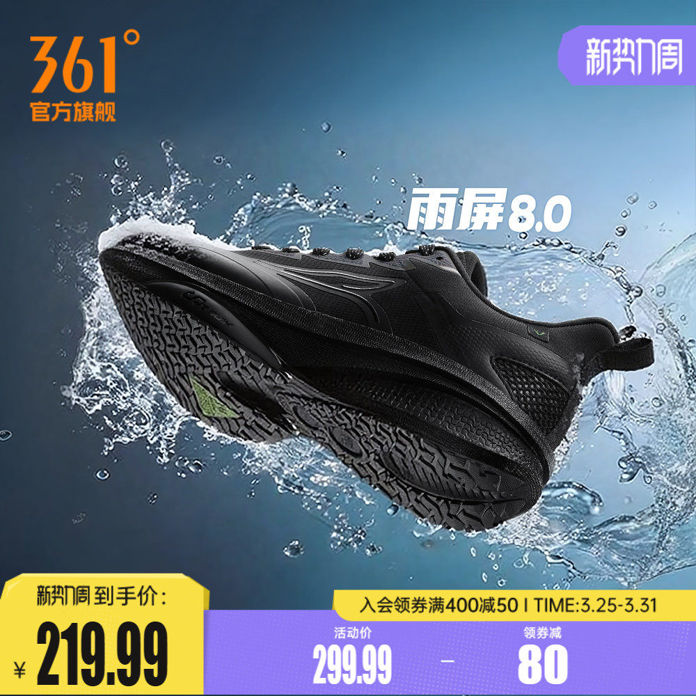 361雨屏8.0跑步鞋男鞋春季防泼水休闲运动鞋雨天通勤黑色减震跑鞋