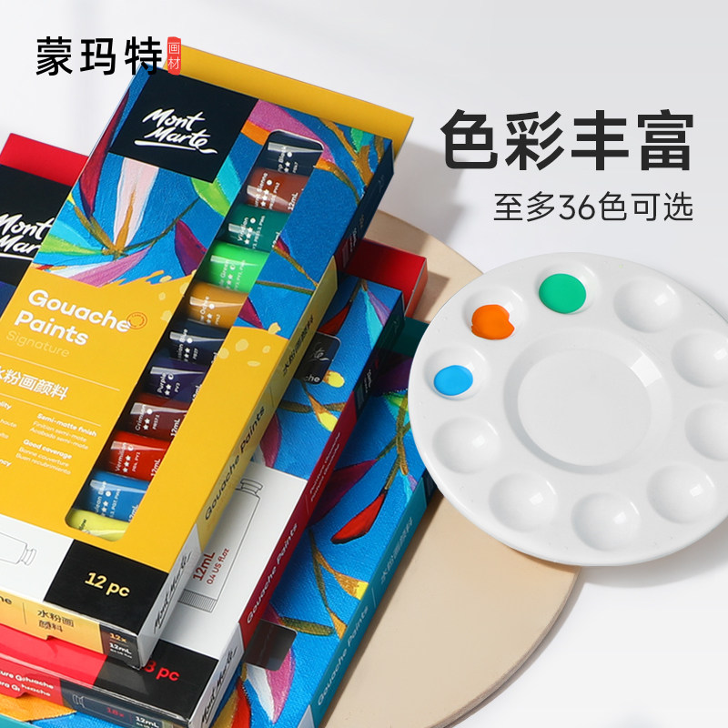 蒙玛特儿童水粉颜料12色套装罐装水彩画6ml大容量全套工具画画材料12ml初学者diy盒装24手绘涂鸦工箱具幼儿园