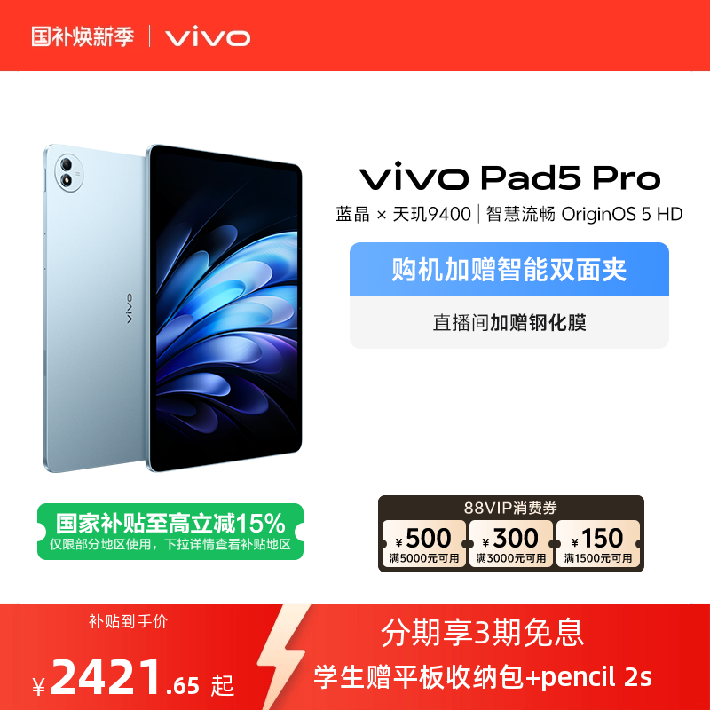 【直播间抢红包 柔光版开售】vivo Pad5 Pro本学生开学好物13寸大屏