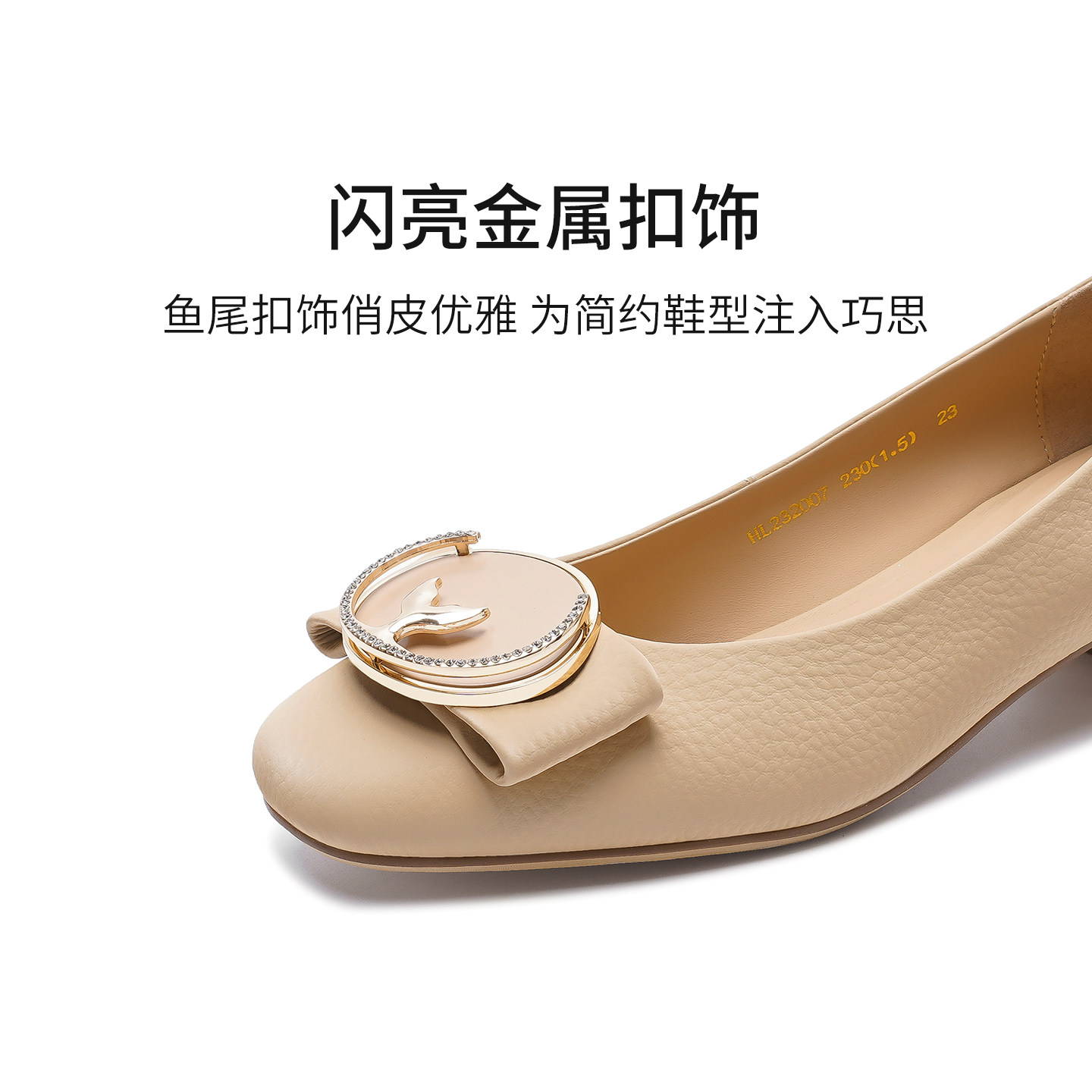 哈森大牌高级感荔枝纹粗跟单鞋女秋季新款通勤牛皮革女鞋HL232007