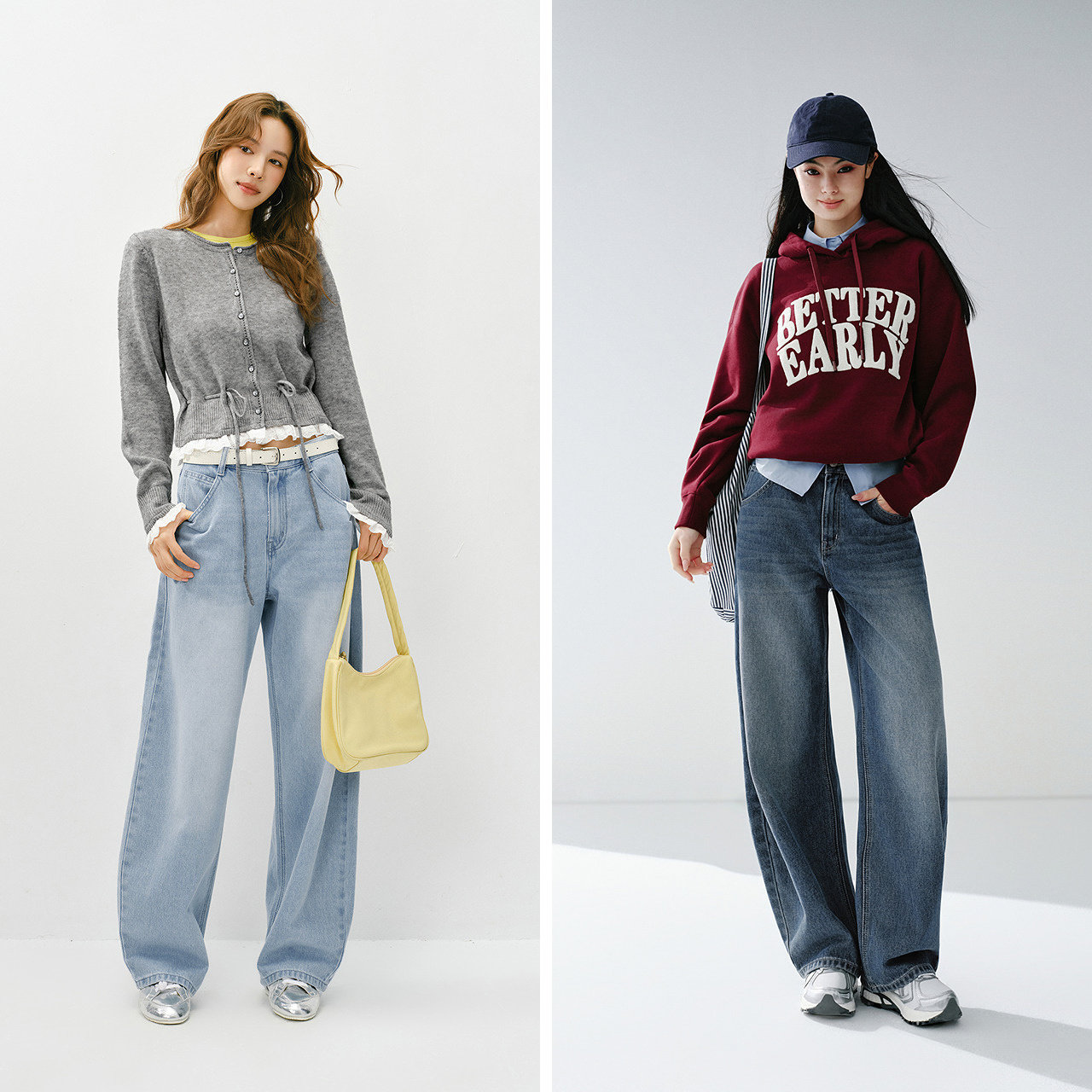 森柔牛仔|商场同款森马牛仔裤女翻边长裤2025秋季新款宽松阔腿裤