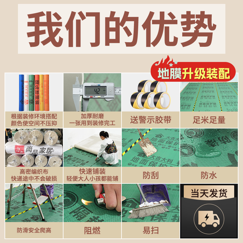 装修地面保护膜瓷砖地砖地膜加厚耐磨保护铺地家装地板贴革防潮膜