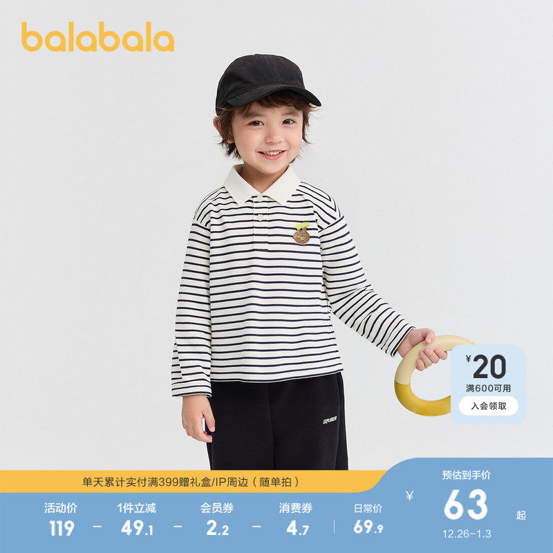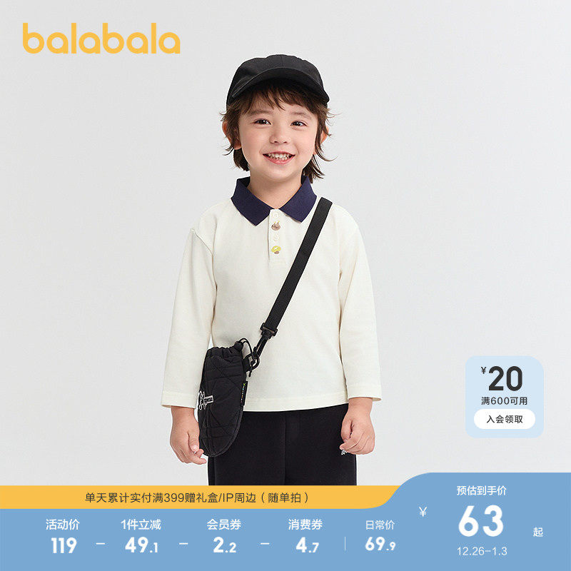 巴拉巴拉童装儿童t恤男宝宝POLO衫2025秋新款打底衫长袖上衣百搭